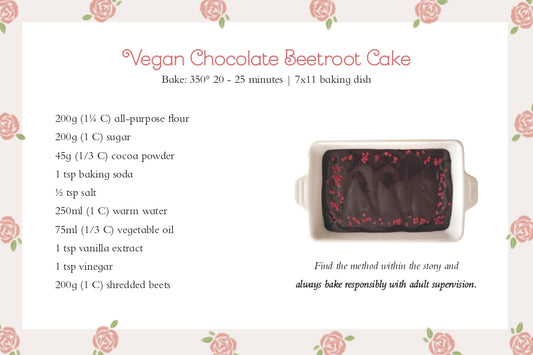 Includes a recipe card for Rose's Chocolate Beetroot Cake!